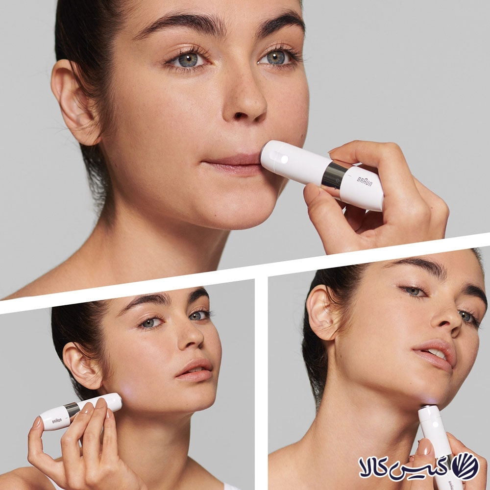 دستگاه اصلاح صورت بانوان براون به ظریف ترین شکل ممکن کوچک ترین و نازک ترین موها یا حتی اونهایی که بشه بهشون گفت پرز رو میگیره و لطافت واقعی پوستتون رو بهتون نشون میشه بسیار جمع و جوره و فقط با یک باطری قلمی کوچک به مدت طولانی کار میکنه