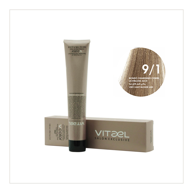 مقایسه رنگ مو ویتائل شماره 9/1 (بلوند دودی خیلی روشن) حجم 100 میلی لیتر - VITAEL PERMANENT HAIR COLOR ۲۲۰,۰۰۰ تومان افزودن به سبد خرید