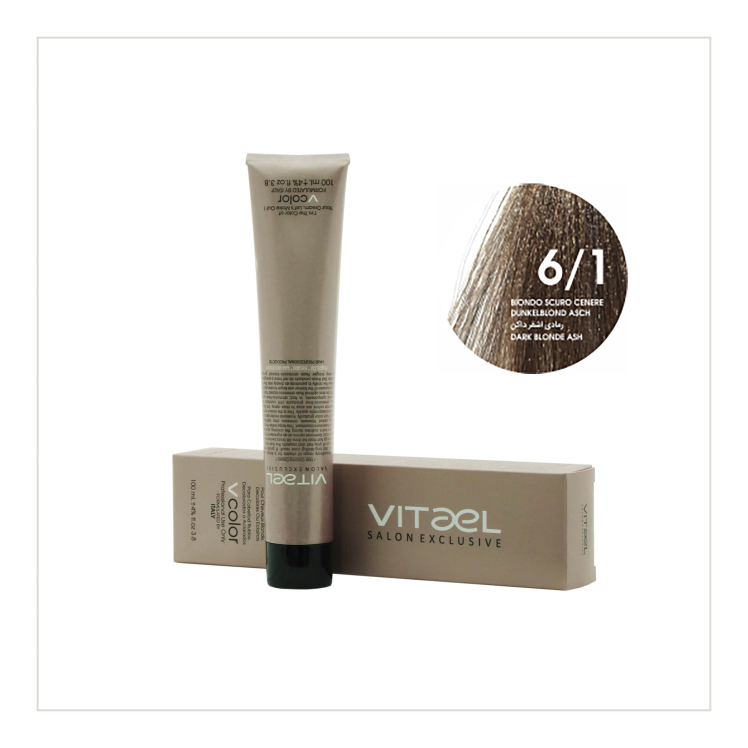 مقایسه رنگ مو ویتائل شماره 6/1 (بلوند دودی تیره) حجم 100 میلی لیتر - VITAEL PERMANENT HAIR COLOR ۲۲۰,۰۰۰ تومان افزودن به سبد خرید