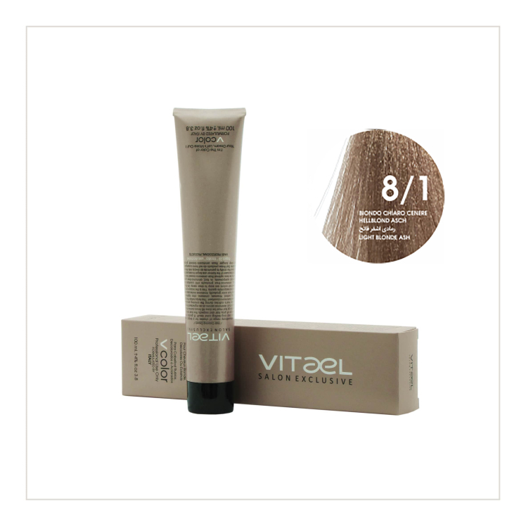مقایسه رنگ مو ویتائل شماره 8/1 (بلوند دودی روشن) حجم 100 میلی لیتر - VITAEL PERMANENT HAIR COLOR ۲۲۰,۰۰۰ تومان افزودن به سبد خرید