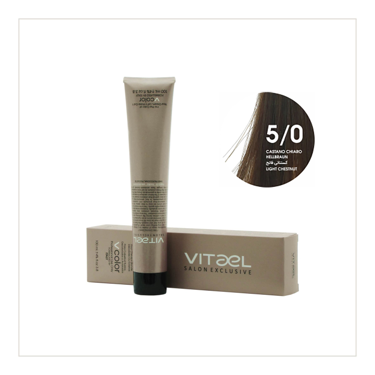 مقایسه رنگ مو ویتائل شماره 5/0 (قهوه ای روشن) حجم 100 میلی لیتر - VITAEL PERMANENT HAIR COLOR ۲۲۰,۰۰۰ تومان افزودن به سبد خرید