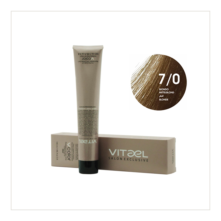 مقایسه رنگ مو ویتائل شماره 7/0 (بلوند) حجم 100 میلی لیتر - VITAEL PERMANENT HAIR COLOR ۲۲۰,۰۰۰ تومان افزودن به سبد خرید