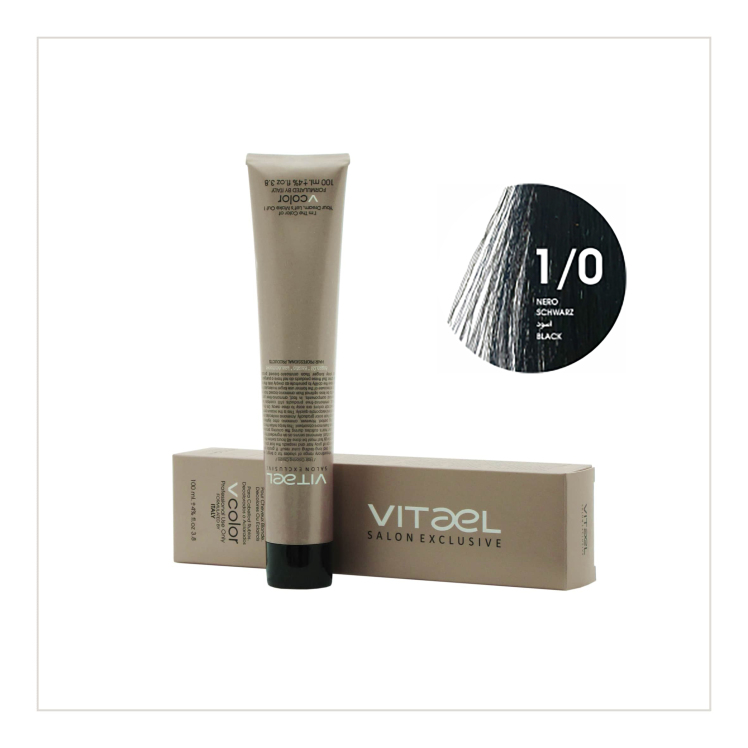 مقایسه رنگ مو ویتائل شماره 1/0 (مشکی) حجم 100 میلی لیتر - VITAEL PERMANENT HAIR COLOR ۲۲۰,۰۰۰ تومان افزودن به سبد خرید